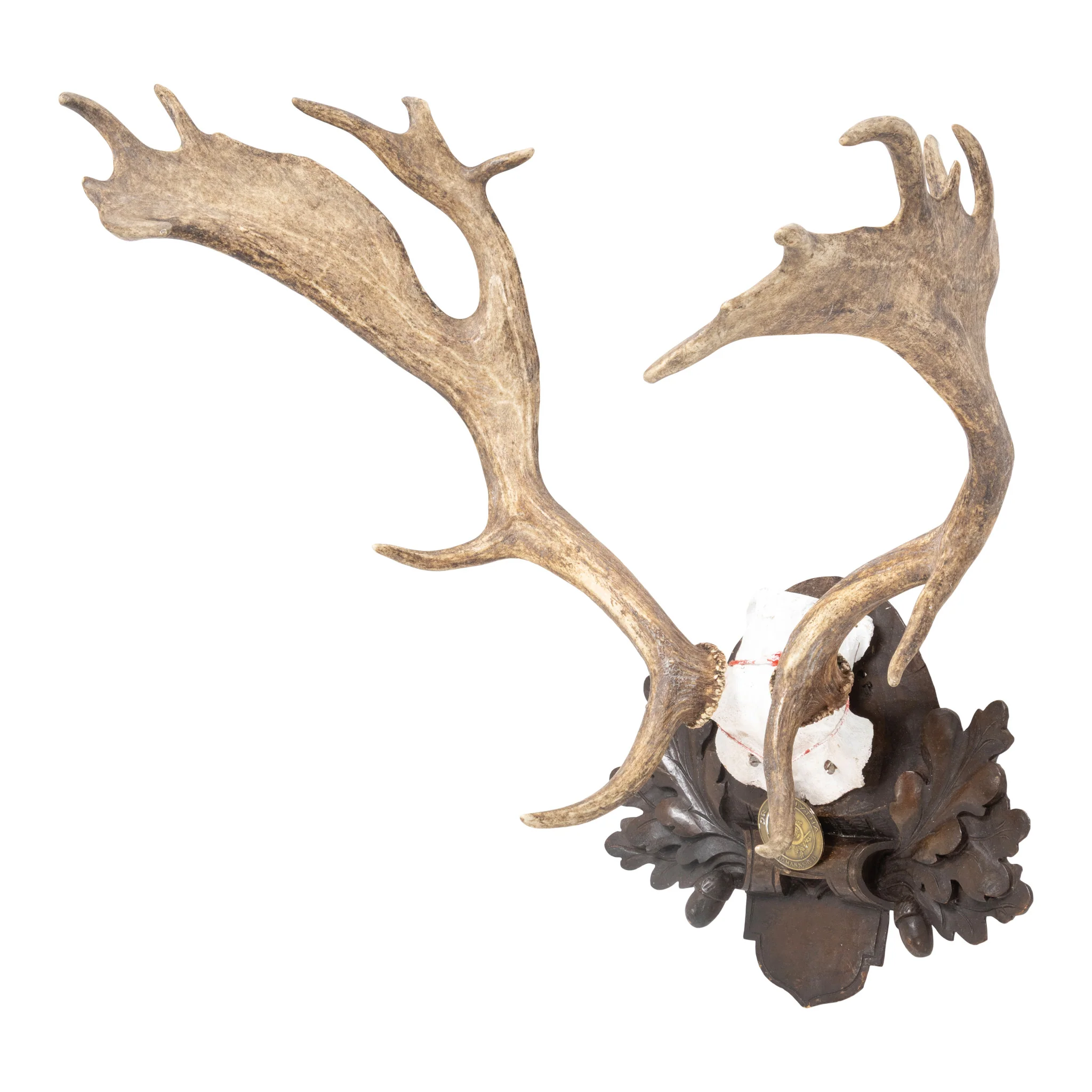 Black Forest Austrian 19th Century Eckartsau Castle Archduke Franz Ferdinand & Kaiser Wilhelm II Fallow Deer mount with Dr. R. K. Hytha medal "Waidmannsheid" (Good Hunting). The Castle of Eckartsau in Austria was Archduke Franz Ferdinand’s (heir to the throne of the Austro-Hungarian Empire) estate from which these antlers were taken.