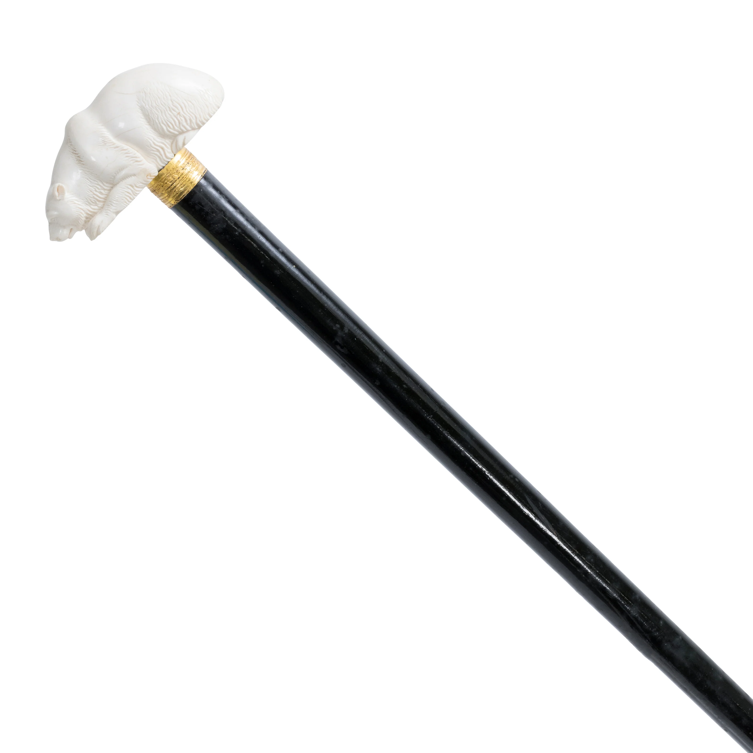 Gentleman's cane with crouching fossilized ivory bear handle. 37"L