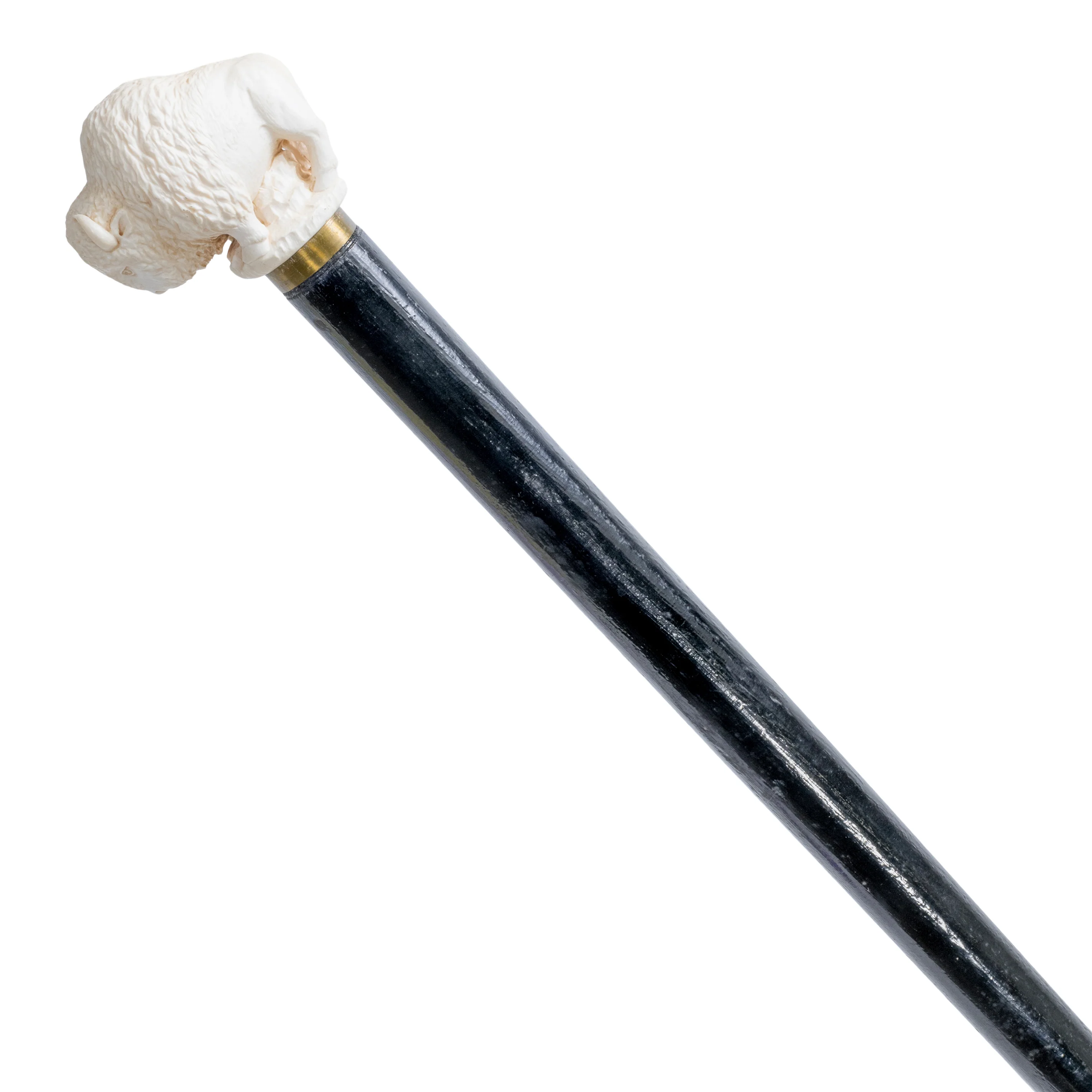 Gentleman's cane with carved fossilized ivory buffalo handle. 37"L